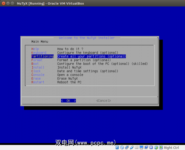 由于其虚拟化,可以通过多种方法来安装NuTyX。我在虚拟机中尝试过NuTyX,并在Atom驱动的Acer上网本上进行了全新安装。这两个过程都非常简单。但是,值得注意的是菜单的日期明确。 DOS时代的菜单集可以指导NuTyX的安装。