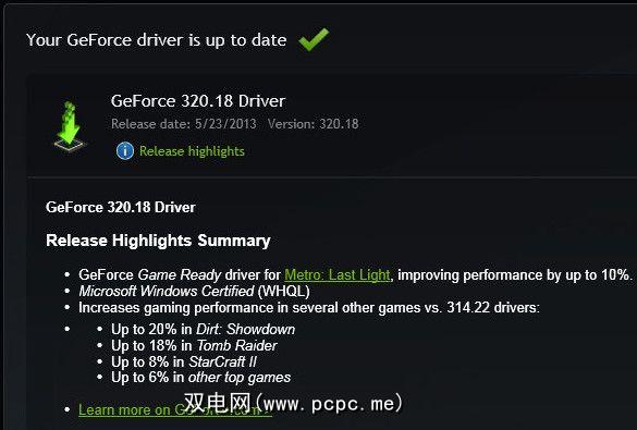 更好的是,GeForce Experience软件实际上提供了一些有用的信息,例如当前的您正在使用的驱动程序版本,以及通过更新可以享受的改进。同样,这是用户已经可以使用的功能,但是将其全部集成到单个界面中可以使过程更加直观。