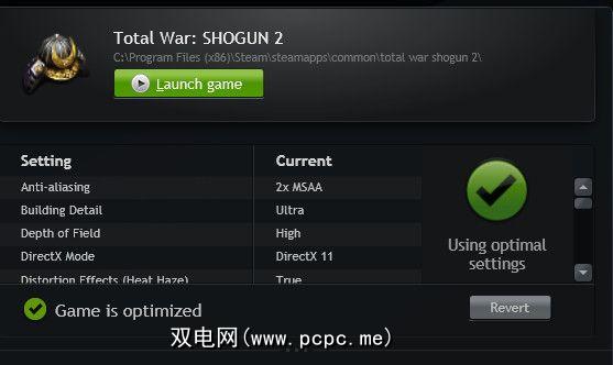 NVidia GeForce Experience通过将设置直接从Nvidia的数据库中导入到您的游戏中解决了这个问题。安装软件后,您可以打开“游戏"选项卡并扫描计算机上安装的游戏。完成此操作后,将出现找到的游戏,您将能够看到您选择的当前设置。单击“ 优化"按钮,软件将自动导入为您的特定Nvidia视频卡提供最佳性能/细节折衷的设置,这些设置将在您下次启动Nvidia视频卡时生效。游戏。