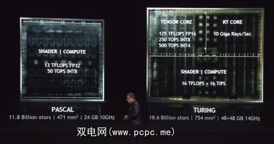 这些新的GPU带有Nvidia具有的普通CUDA内核。一直用于前几代人。此外,它们还带有专用于机器学习的“ Tensor"内核和用于射线追踪的“ RT"内核。总结起来,英伟达已经将这些GPU基于更智能的新架构,并且拥有专门用于光线追踪的硬件,这是第一个。