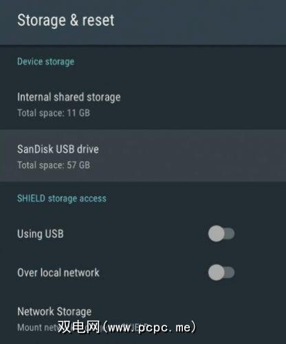 使用称为“可采用的存储"的功能,您可以插入任何USB或闪存驱动器,并使Shield识别为内部存储器。只需转到设置>存储并重置即可进行设置。请注意,该驱动器将被加密到您的Shield,并且将无法在其他设备上使用。