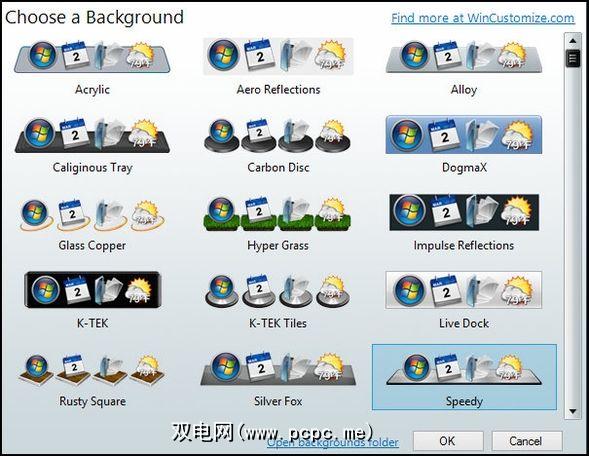 一旦您添加了所需的快捷方式并设置了ObjectDock,就该使用主题来个性化它了。 ObjectDock确实带有一些看起来不错的主题(如下图所示)。您可以通过“样式/颜色"下“主页"选项卡上的“设置"窗口访问它们。然后单击链接更改背景。