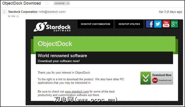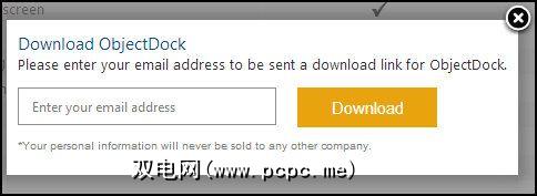 我要坦率地说,ObjectDock的制造商StarDock无法提供最简单的下载过程。首先有两个版本,免费版和增强版。单击免费版本的下载链接后,StarDock会提示您输入电子邮件地址以授予您下载权限。