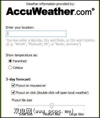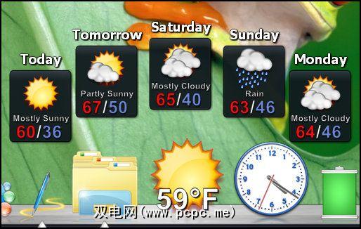 天气(将鼠标悬停在其上后会扩展到5天预报)