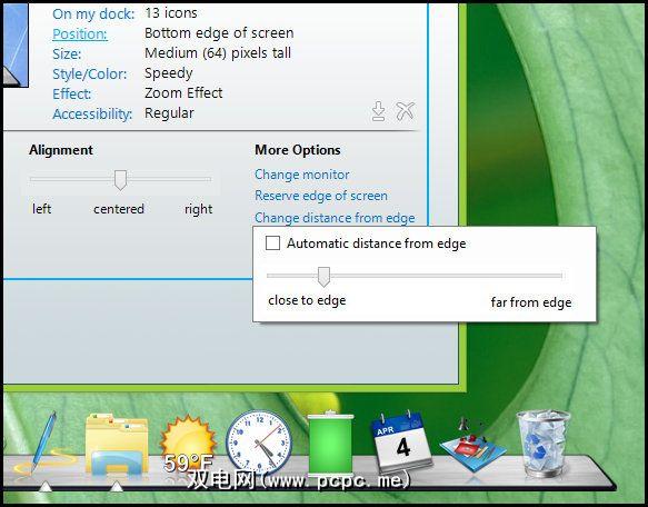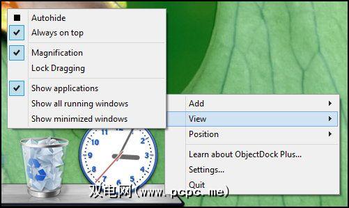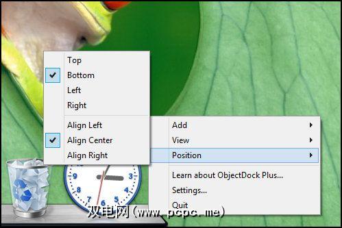 ObjectDock可以位于底部,顶部,屏幕的左侧或右侧。可以将其对齐方式调整为左,右或居中。可以在设置窗口的位置下进行调整,也可以通过右键单击停靠栏并将鼠标悬停在 Position 上。