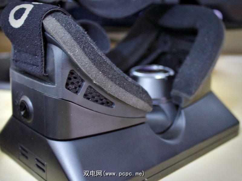 耳机本身由 7英寸1280 x 800 (比例为16:10)的屏幕安装在带有泡沫垫的塑料头枕中。在底部有小网眼开口,以防止蒸汽积聚。