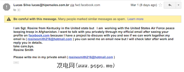 另一种流行的电子邮件骗局是Nigerian 419骗局(也称为预付款欺诈)。这些电子邮件向受害者承诺,如果他们提前支付了一部分钱,便会获得一大笔钱。当然,这笔钱永远不会兑现,受害者也就没钱了。