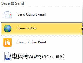 现在,Office也正在进入该游戏。新的保存到Web 功能使您可以将文件直接保存到Windows Live SkyDrive(前提是文档是Word,Excel或PowerPoint文件)。