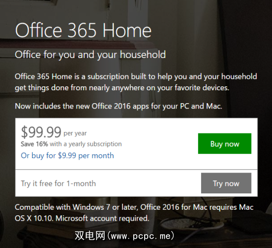 什么阻止了你?从常规Office到Office 365,请考虑以下事项:Office 365 Home对于5个用户来说每年99.99美元。该服务会不断更新,因此您将始终拥有最新的软件。相比之下,Office Home&Student 2016一台PC的价格为149.99美元,您将无法获得任何免费升级。
