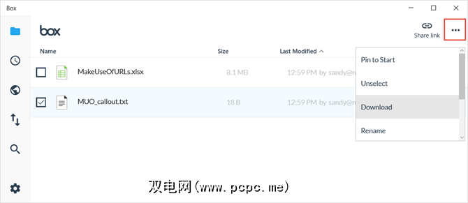 如果您是Box用户,则Windows应用程序提供的访问类型与Dropbox应用程序相同。您将看到您的文件夹和文档,最新项目,更新的文件以及传输。您还可以搜索方便的特定文件。