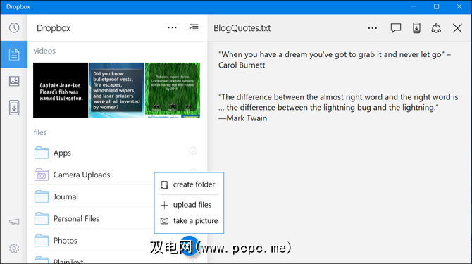 使用适用于Windows的Dropbox应用程序,您可以访问所有文件以及通知。您可以观看保存的视频,查看照片以及签出文档。如果要编辑文件,只需选择右上角的更多(三点)图标,选择打开方式,然后选择应用程序即可。