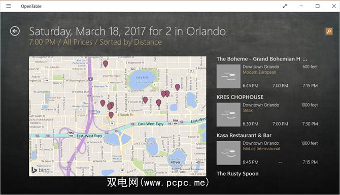 从您的一天中休息一下,找到一个可以使用OpenTable应用程序享用晚餐的地方。您只需输入您的位置,所需的日期和时间以及聚会的规模。点击查找表,您将看到您的选项绘制在地图上,并且可以从右侧选择其中的一个以接收更多详细信息。