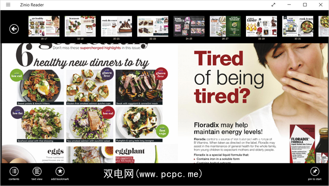 选择要阅读的杂志,如果您浏览的是顶部和底部,想跳过。当您开始阅读时,导航消失了,您可以全面浏览页面。然后,只需单击屏幕左右箭头即可在杂志中前进或后退。