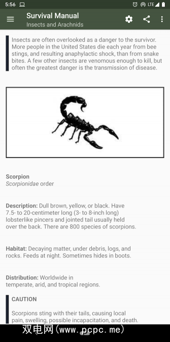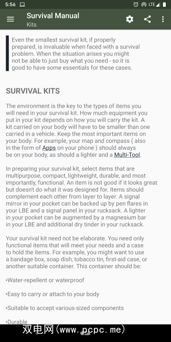 “离线生存手册"还显示了一些部分的信息图和图像,以使您更容易理解。另外,如果您不想冒险用完手机的电池,则该应用程序可以选择打印信息。说到这,如果您打算定期冒险,您可能会考虑使用坚固的户外电话。