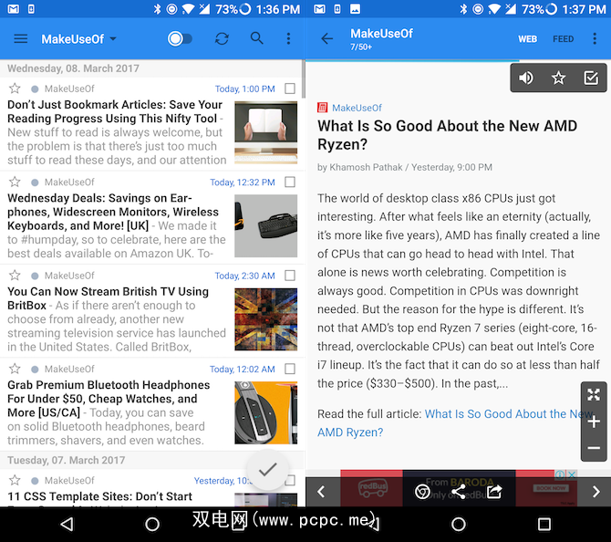 Newsify是新闻和RSS阅读器,它将自动从订阅的站点下载新文章。您可以直接从Newsify添加来源,也可以仅连接您的Feedly帐户。 Newsify是带有广告的免费应用程序(但是,当您以离线模式阅读新闻时,这应该不是问题)。