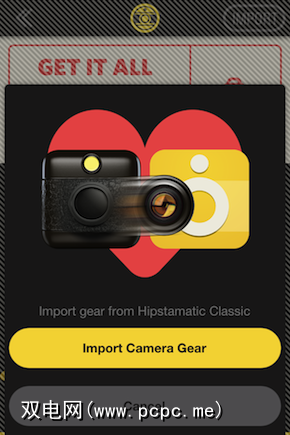 更重要的是,点击获取更多装备按钮将带您进入一个页面,您可以在其中导入Hipstamatic齿轮。