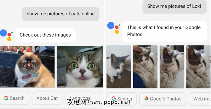 例如,要求Google向您显示在线猫的图片,将在网络上显示图片搜索结果。但是,如果您要求Google显示猫的照片,它将从“照片"应用程序中加载照片。