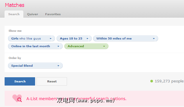 OkCupid似乎是由一群统计学家管理,它可以显示出他们匹配算法的质量(如果您还没有看到他们的精彩统计博客,那很值得您花时间)。它也是免费的,它本身比许多竞争对手都具有很大的优势(较高的约会网站进入门槛往往会导致比平均水平更为绝望的用户群)。