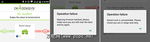 该应用程序的想法是您可以滑动以锁定或解锁门,而智能锁是通过手机与手机的互动进行了同步。您可以分配其他用户并通过应用程序管理多个锁。如果解决了蓝牙问题,这是一个很酷的概念,但是直到那时,它还是困扰着许多问题。