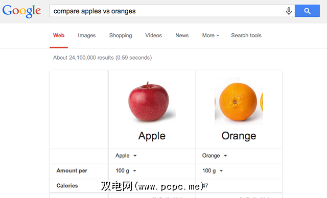 当然,Google并不是唯一的工具:自称为“知识引擎"的Wolfram Alpha也可以提供营养信息,尽管没有并排参考。但是,如果您已经在不断使用Google,那么营养比较还可以为该网站提供另一种用途。