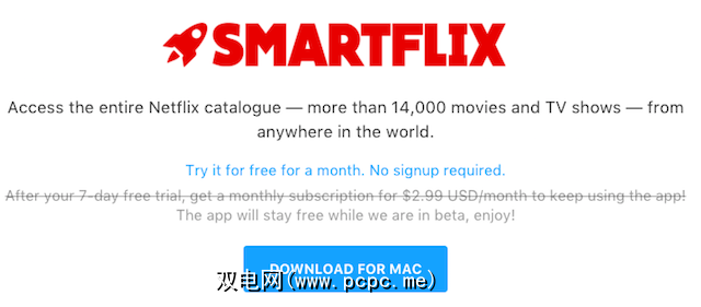 [ 2016年10月22日更新::Smartflix不再运行,并在网站上显示一条通知, “在Netflix进行了最近,极为激进且有针对性的VPN /代理镇压之后,我们不相信我们能够提供与过去向用户提供的服务质量相同的服务。对于由此给您带来的不便,我们深表歉意。]