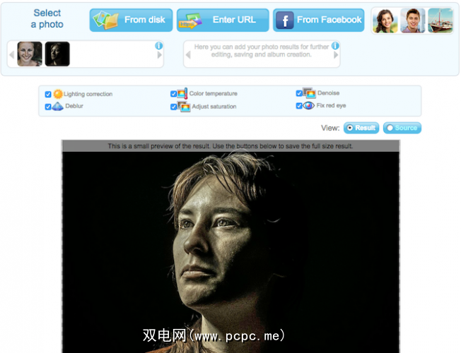 您可以从硬盘驱动器或通过Dropbox,Facebook或任何其他设备上传图像网络上的链接。应用一键式增强功能后,单击并按住“比较"按钮即可查看前后的图像。这是查看您真正喜欢的东西的好方法。