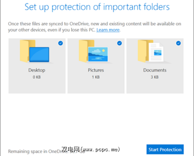 要在Windows 10中为OneDrive启用文件夹保护功能,请转到OneDrive设置,单击“自动保存",然后单击“更新文件夹"。接下来,选择要与OneDrive同步的文件夹,然后单击“开始保护"。