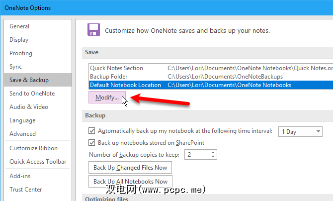 OneNote没有 Save 按钮,因为OneNote文件是自动保存的。但是,您可以在OneNote 2016 Windows桌面应用程序中更改本地笔记本的默认保存位置以及单个笔记本的位置。