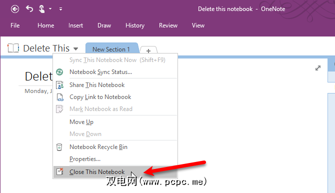 在删除笔记本文件之前,必须在OneNote中关闭笔记本。右键单击笔记本名称,然后选择关闭此笔记本。您也可以转到文件>信息,单击笔记本名称旁边的设置,然后选择关闭。
