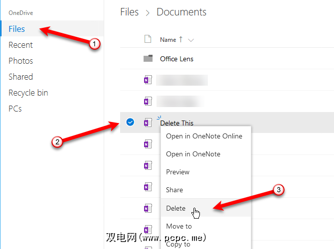 要删除存储在OneDrive中的笔记本,请在浏览器中登录到您的OneDrive帐户。转到文件,然后单击文档文件夹以将其打开。您所有的OneNote笔记本在文件名旁边都会有OneNote图标。在文件列表中找到笔记本的名称,右键单击名称,然后选择删除。