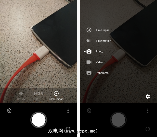 上面,您可以看到相机应用本身的外观。它非常简单易用。您可以选择“清晰图像"(OnePlus的算法来获得高百万像素的照片),“ HDR"和“美丽"模式。从左侧向内轻扫,您可以使用延时模式或拍摄慢动作视频(尽管仅在720p中)。