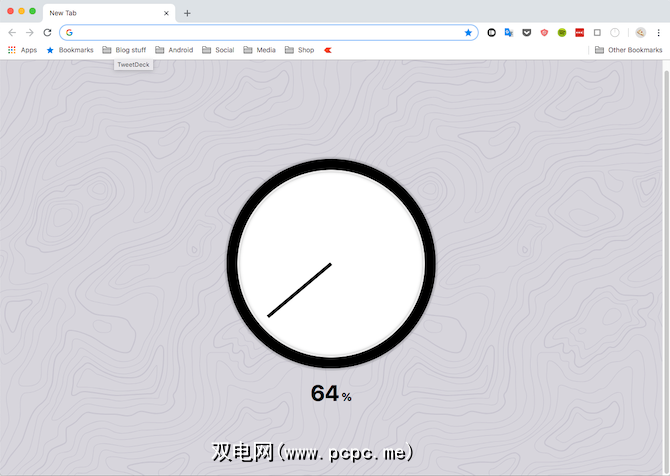 您的时间有限,在下午4点狂欢观看猫咪视频时,您可能没有意识到。这里有一个名为“模拟百分比时钟"的扩展会提醒您。为此,您可以用一个模拟时钟替换新页面,然后将一天中所占的百分比替换掉。更重要的是,该扩展程序具有简洁的设计,令人愉悦,不会使计算机停滞不前。