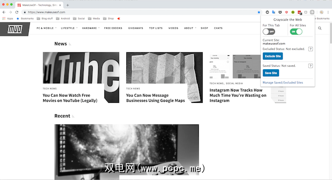 减少屏幕使用量的一种行之有效的技术是在那些迷人的颜色上涂上灰度涂层。您也可以在Google Chrome浏览器上执行相同的操作,扩展名为标题为“灰度显示Web"。