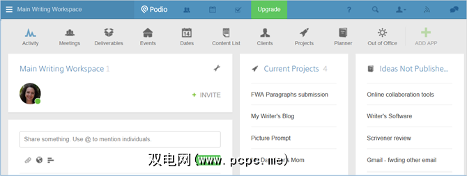 如果您希望采用文本处理的项目管理方法,而不是视觉上,尝试一下Podio。此应用程序为您的团队和项目使用工作区。在工作区中,您可以创建和查看任务,检查日历并以平铺格式查看所有项目活动。