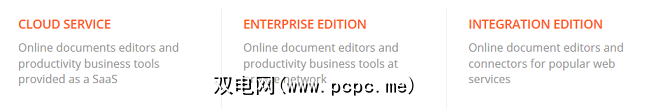 不过,您可能会认为SaaS选项不适合您的业务。在这种情况下,ONLYOFFICE Enterprise Edition可能正是您所追求的。企业版可为用户提供相同的基于Web的体验,同时将数据保留在服务器上。与SaaS产品不同,此版本每服务器一次性提供固定成本。根据用户数量和同时进行的编辑会话,可以提供三个单独的许可证选项。