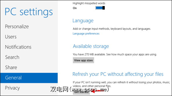 这是使Windows恢复到新状态的快速方法,而不会丢失文件或执行传统的Windows安装过程。您可以在PC设置应用的“常规"部分下找到此选项。