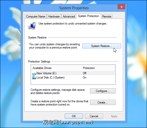 您还可以使用系统还原功能部分还原系统,而无需执行刷新。系统还原不会清除您已安装的桌面程序,因此这是一种更快的方法。系统还原会自动创建“还原点",该还原点会为重要的系统文件创建备份。