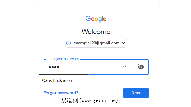 某些网站会通知您Caps Lock是否已打开。上面的屏幕截图来自Microsoft Edge,它也可以做到这一点。无论如何,这是一个令人沮丧的疏忽,很容易解决。
