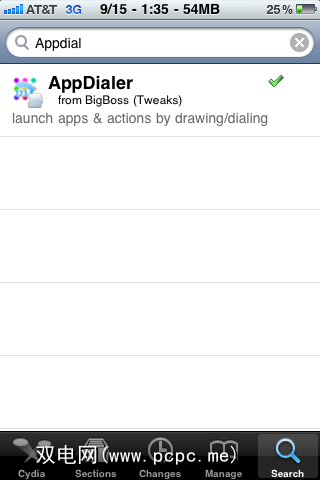 AppDialer可免费在以下版本中使用Cydia。它位于默认存储库下,因此无需去寻找该应用程序的任何时髦存储库。只需打开Cydia并搜索“ AppDialer ",然后在搜索结果中单击AppDialer的链接即可。在屏幕顶部,您将看到一个安装按钮,单击该按钮,然后让Cydia进行操作。