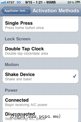 下一步是单击“激活方法"以设置要用于激活AppDialer的手势。我选择摇晃设备使其开始运行,但是有很多可用的方法可以使它启动对您来说最舒适。