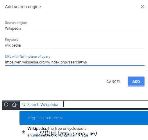 添加网站后,您可以随时对其进行搜索。按 Ctrl + L 专注于地址栏,然后键入快捷方式(如 wiki )并按 Tab 。您会看到多功能框的左侧显示搜索[站点] ;输入查询内容,然后按 Enter 进行搜索。如果操作正确,您将看到搜索的内容。