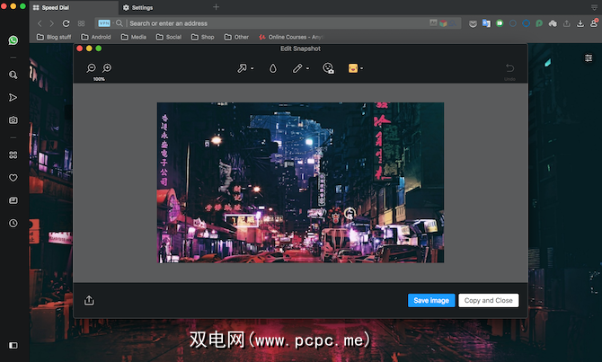 完成后,Opera将显示一个预览屏幕,您可以在其中轻松编辑图像,添加文字,箭头和作品。如果您不想保存文件,甚至可以将其复制并粘贴到任何地方。