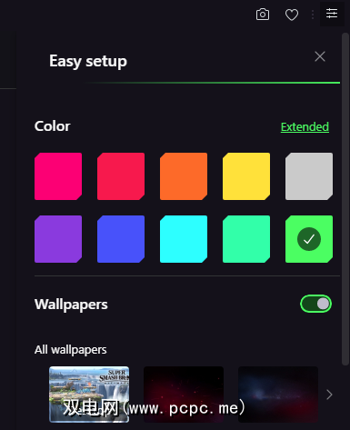 要说的是,如果您希望浏览器与PC上的自定义照明主题匹配,Opera GX可以为您提供选择。点击浏览器右上角的易于设置按钮(看起来像一组滑块)。