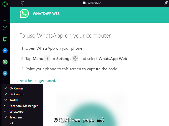 如果您通过Facebook Messenger,WhatsApp或Telegram与朋友聊天,也可以在Opera GX侧边栏中访问这些应用。只需通过前面所述的菜单启用它们,然后登录您的帐户。