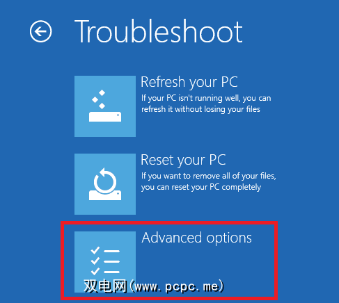 下一步,导航至疑难解答>高级选项>命令提示符 。加载命令提示符后,键入以下三个命令。在每个命令之后都按 Enter :