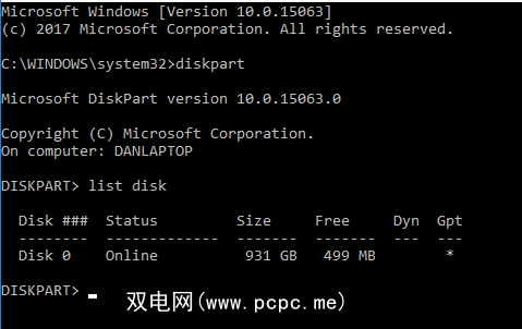 在命令提示符中,键入 diskpart 并按 Enter ,然后键入列表磁盘,然后按 Enter 。您将看到连接到计算机的所有磁盘的列表。记下所需的磁盘号。通常,它是最大的磁盘。