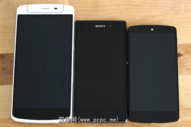 这是一部大型手机。这是我刚从包装盒中取出时的第一印象,但是它卡住了:感觉大,就像将它塞进口袋里简直是愚蠢的举动。在这里,它紧挨着Sony Xperia Z1和Nexus 5: