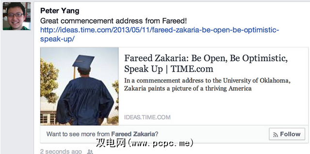 Facebook现在在人们共享链接时显示了很多信息:托管该文章的网站的Facebook页面以及撰写该文章的作者现在可以作为“关注"按钮(如果查看链接的人尚未关注)。要做的就是为您的网站在您撰写的每个帖子中生成一个额外的元标签,这些标签会正常工作。