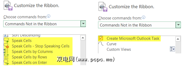 如果您想使用音频,则可以添加语音命令来收听单元格中的单元格文本。大声说出Excel电子表格或Word文档中的选定文本。如果您使用Outlook管理待办事项,则可以添加一个命令,只需单击一下即可从功能区创建任务。如果要使用鼠标包括快速绘图,则可以添加Scribble命令。这些只是可用的隐藏选项的一些示例,这些选项可能对您很有用。
