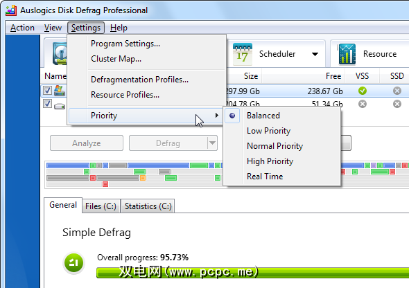 Auslogics Disk Defrag Professional提供了可配置的优先级-如果您在进行碎片整理时使用系统,将优先级设置为“低优先级"会减少碎片整理过程对性能的影响。您还可以创建自己的优先级(称为“资源配置文件")以更好地控制碎片整理过程。